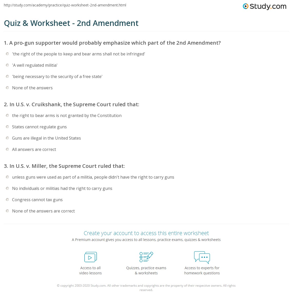 Extra credit, answer 2 of 3: Answer key (included in the lesson plan . Download free worksheet · view answers. You can go over important facts about the first amendment by answering the questions in this online quiz and worksheet. Additional online resources from the national archives.